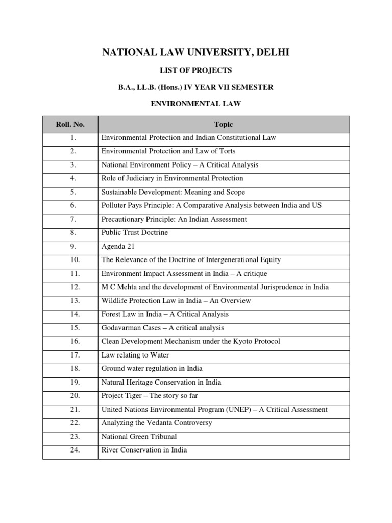 Project List Environmental Law Environmental Law Environmental Policy