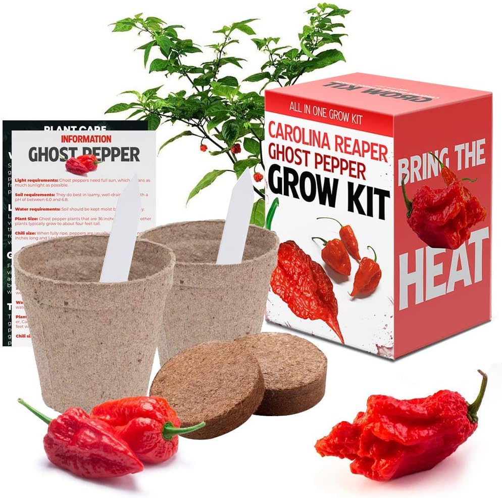 Amazon Com Carolina Reaper And Ghost Pepper Chili Grow Kit All In One Pepper Seed Plant Growing Kit Gift Garden Outdoor